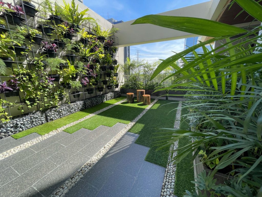 Water feature ini tidak hanya berfungsi sebagai pemanis visual, tetapi juga berkontribusi pada kualitas lingkungan. Suara air yang lembut memberikan efek relaksasi alami, menjadikan area sekitar sebagai tempat ideal untuk bersantai atau menikmati waktu bersama keluarga.